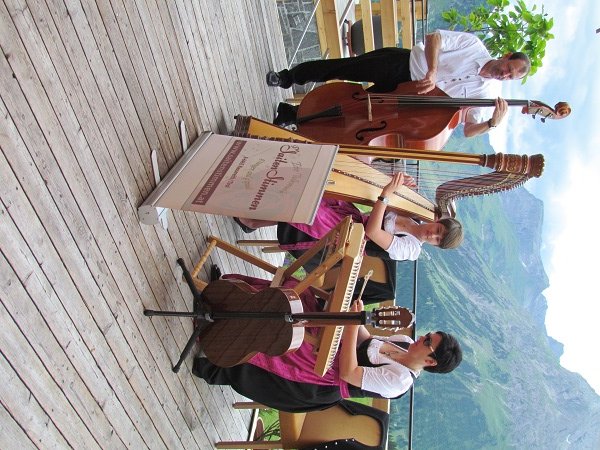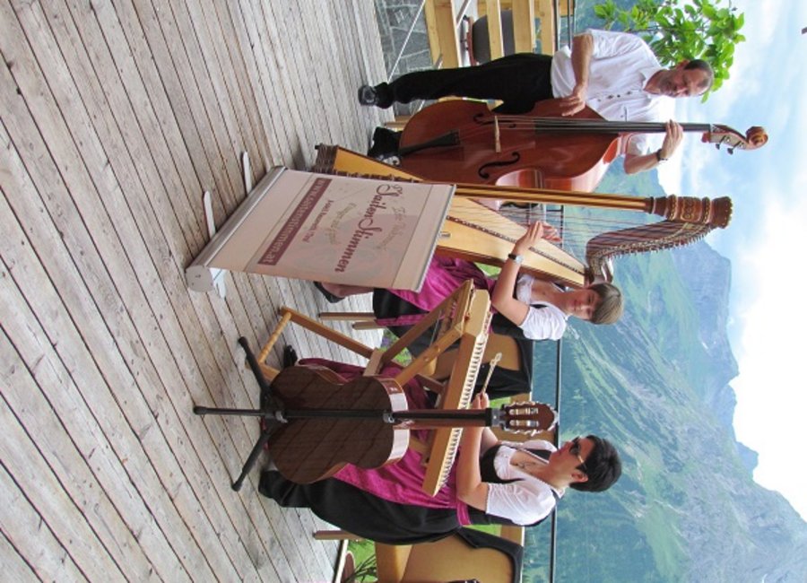 Auf der Mohnenfluhterrasse ist heute viel Betrieb zum 7. Lecher Musikantentag. Die„Saitenstimmen“ sorgen momentan für Stimmung und werden über Mittag vom „Brandenberger Saitensprung“ unterstützt.