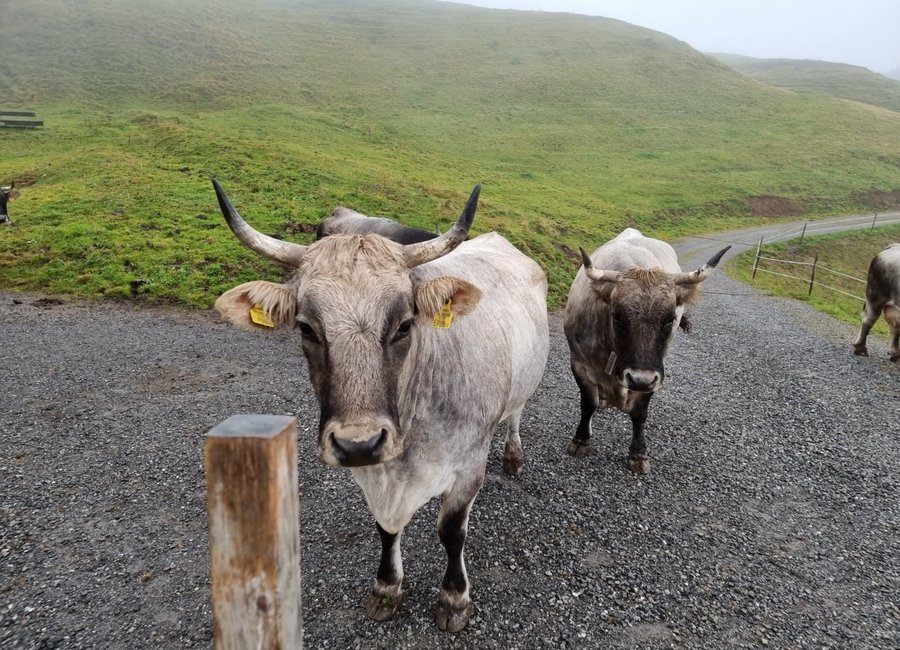 Die Kühe sind von der Alm zurück. Stefan, Martin, Johannes und Marian haben heute die Kühe wieder geholt. Der Almabtrieb war erfolgreich und all unser Grauvieh ist wieder im trauten Heim ☘︎