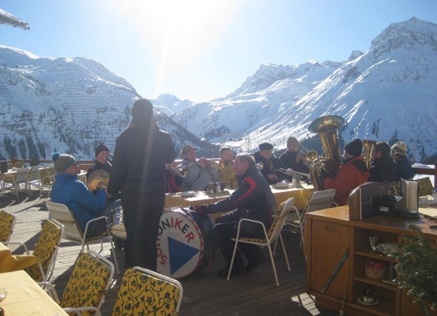 Einen traumhaften Skitag haben die "Suffoniker" Musikanten