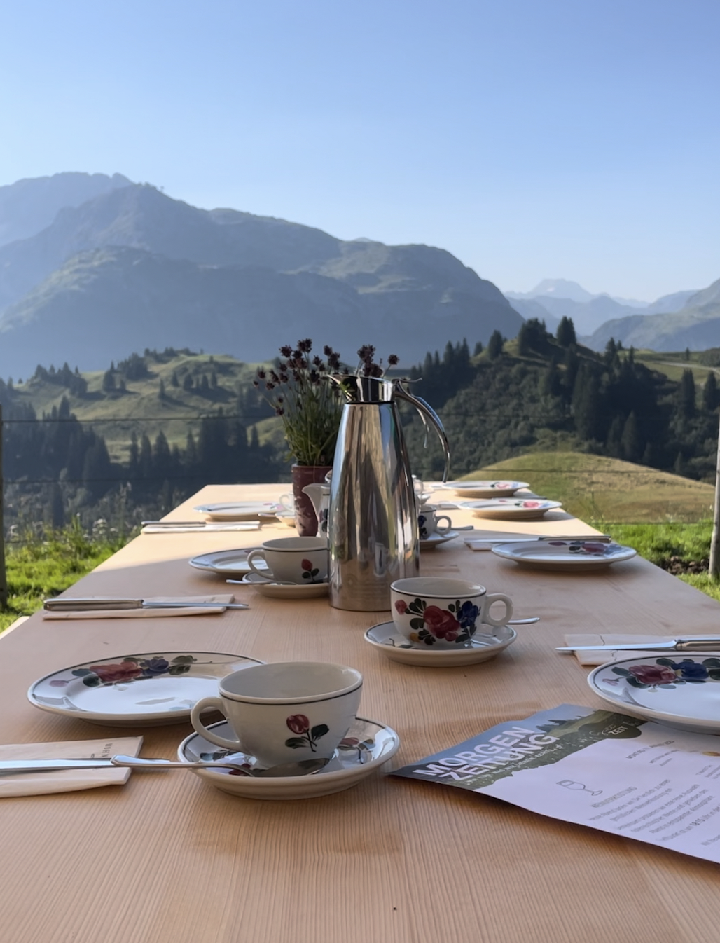 Unser liebstes Frühstück ist immer montags, denn da frühstücken wir gemeinsam auf der Gaisbühel-Alpe! Ist das nicht die beste Aussicht um in den Tag zu starten?