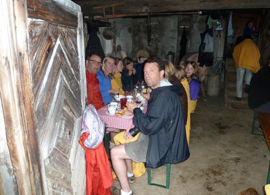 und alle haben dieses außergewöhnliche Bergfrühstück sichtlich