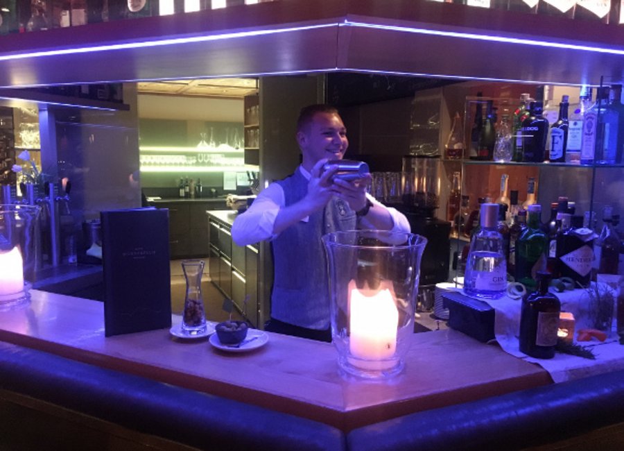 Unser Barkeeper Markus verwöhnt die Gäste zur Blue-Night-Gin mit kreativen und herrlichen Cocktail-Kreationen. - Toll sieht es nebenbei auch noch aus :-)