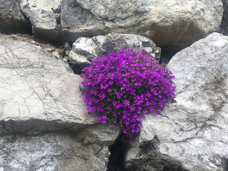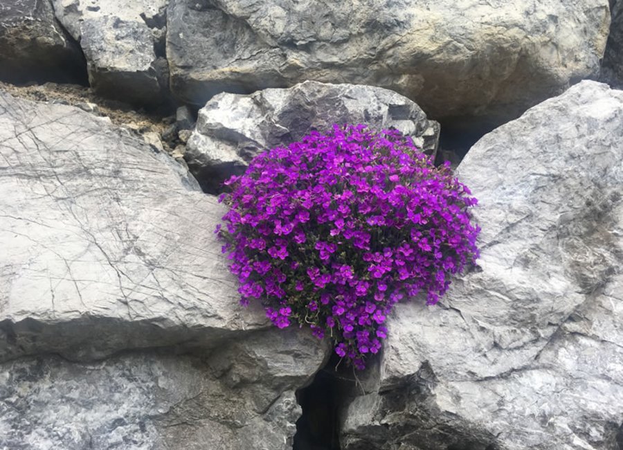 Hier haben sich bereits die ersten Blumen zwischen den Steinen einen Weg gebahnt und steigern unsere Vorfreude auf den Lecher Bergsommer.