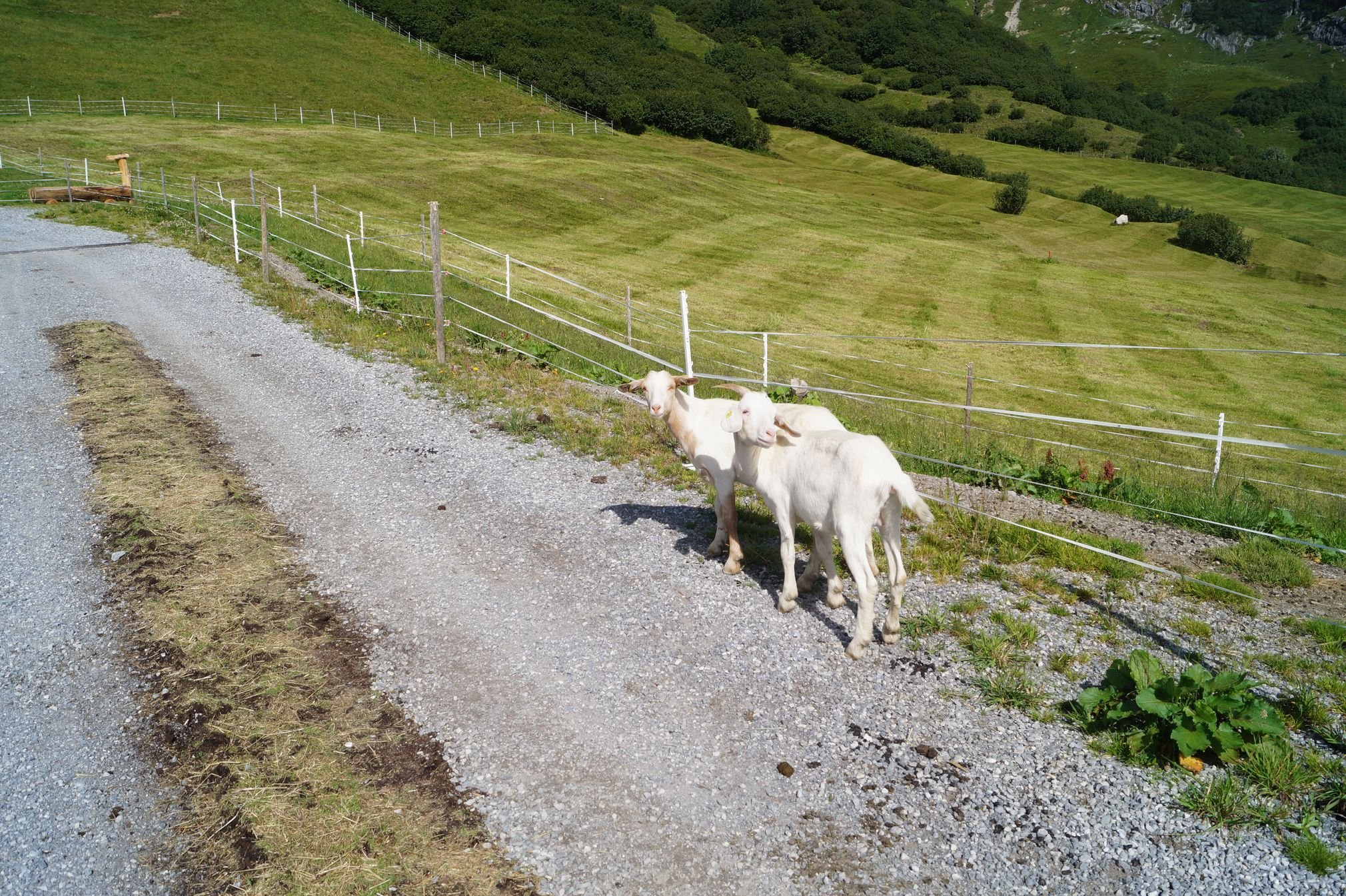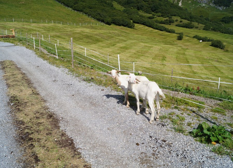 Unsere Ziegen sind auf dem Spazierweg zur Gaisbühelalpe.