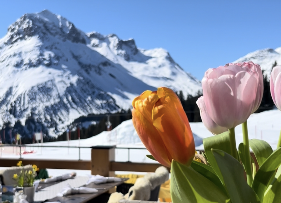Langsam, aber sicher kommt der Frühling auch in Oberlech an. Zumindest auf der Terrasse blüht schon ein Meer aus bunten Tulpen. Was für eine wunderbare Jahreszeit!