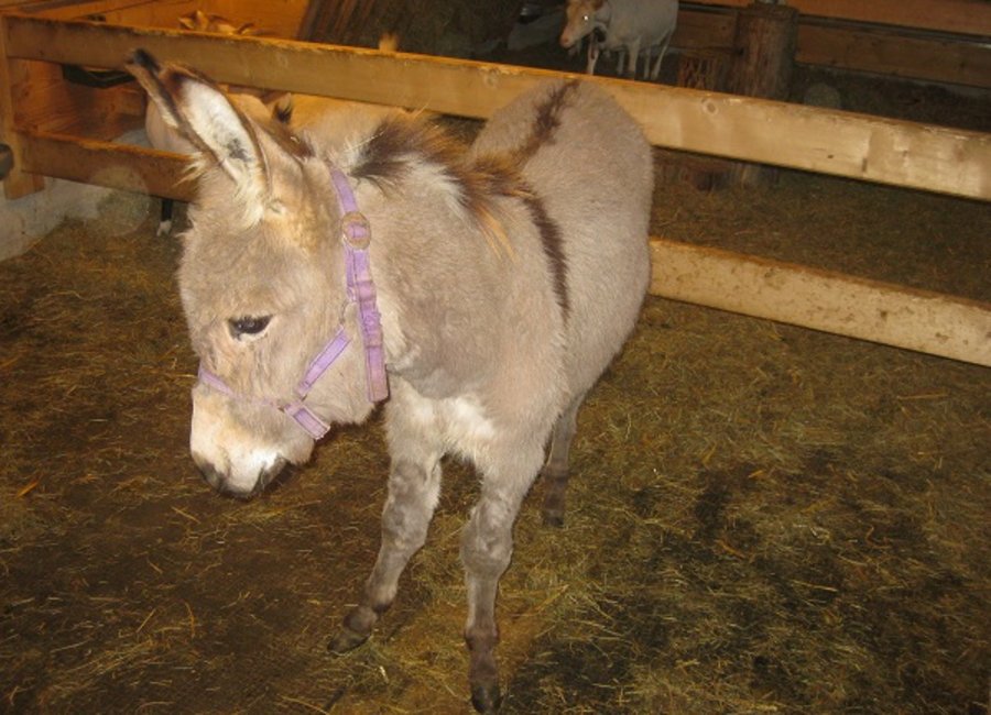 Heinz fühlt sich schon ziemlich wohl bei uns im Muxelhof, Eselin