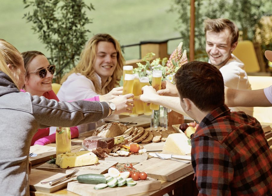 Nach gelungenem Ausflug endlich eine deftige Stärkung auf unserer Sonnenterrasse.