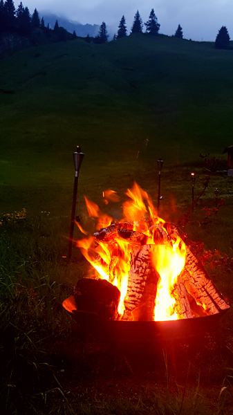 Am Abend haben wir ein kleines aber feines Bergfeuer vor unserer Terrasse gemacht.