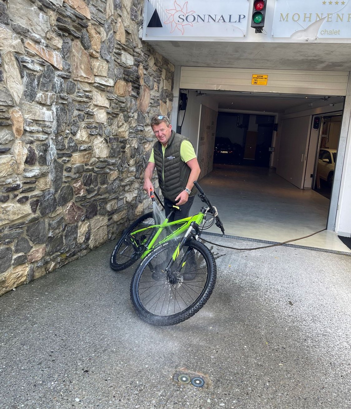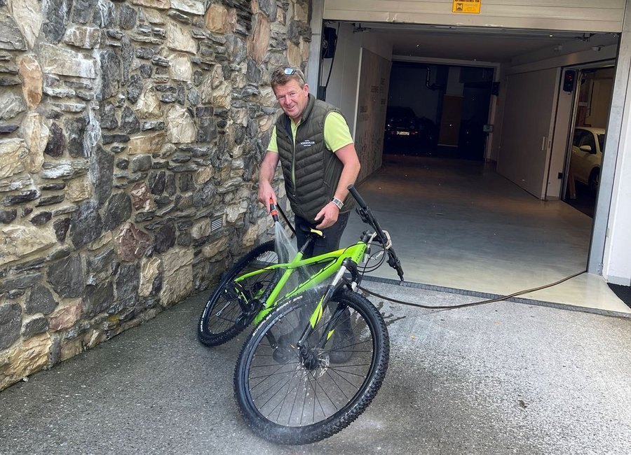 Unser Hausmeister Marijan putzt schon fleißig unsere E-Bikes für unsere Gäste.
