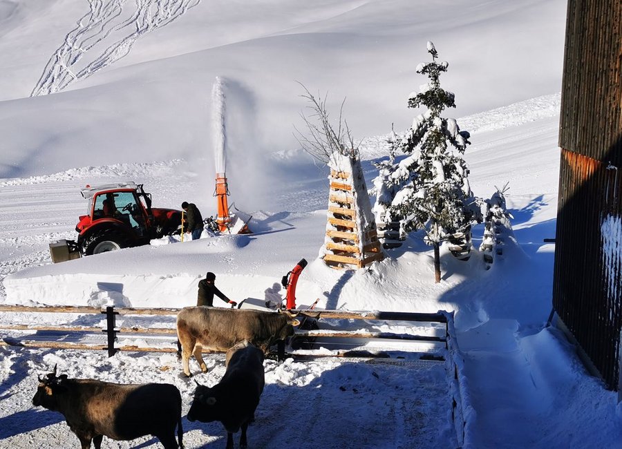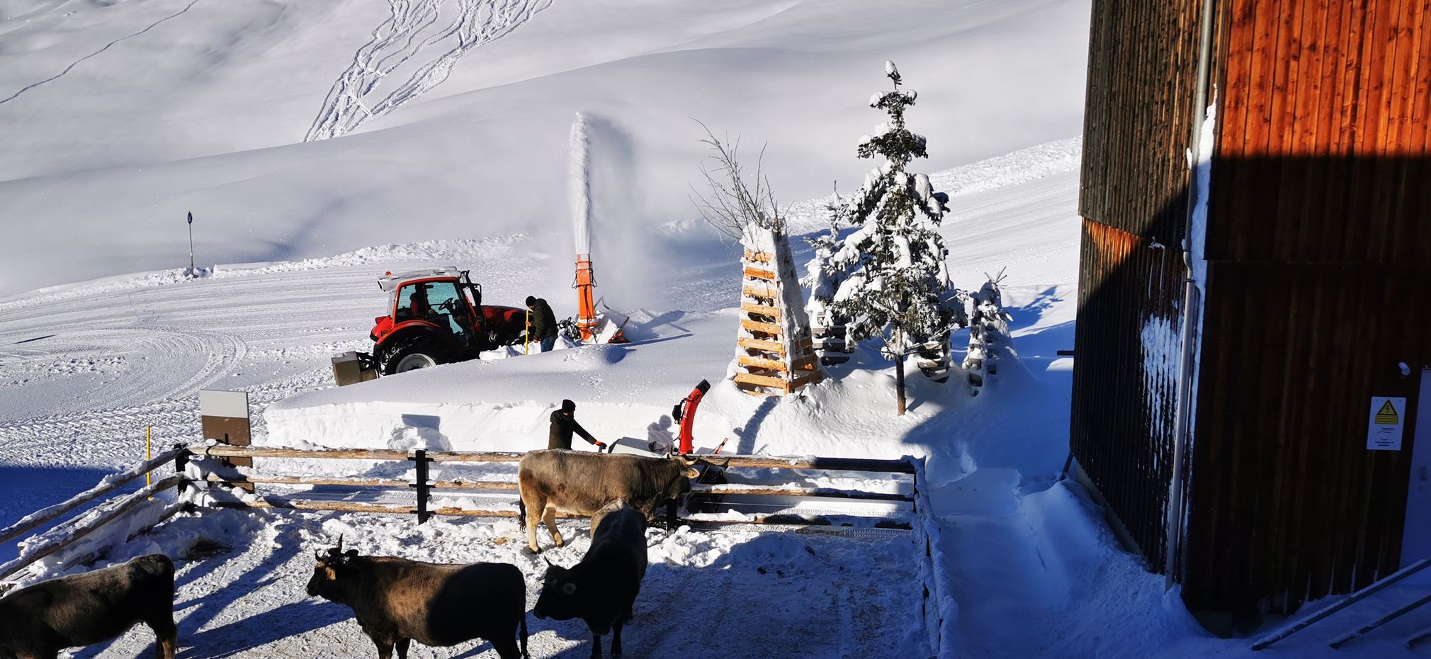Stefan und Guido sind fleißg dabei, die Schneemassen weg zu fräsen und die Wege für unsere Tagesgäste frei zu machen. Ein wunderschöner Tag liegt vor uns. ☼
