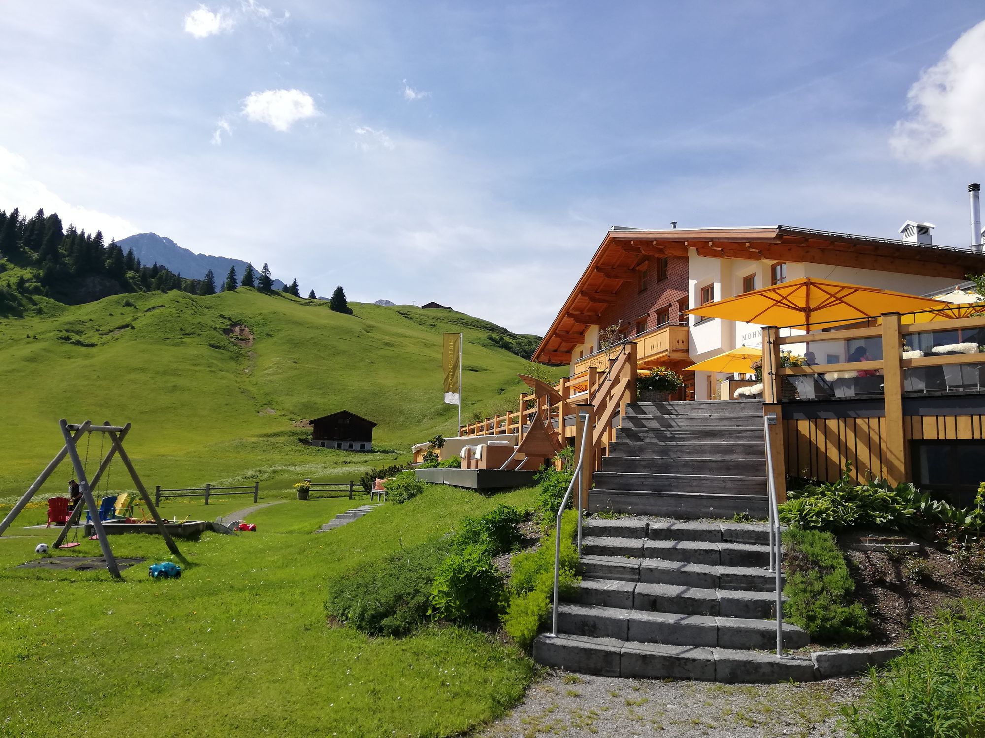 Und auch die Kulisse könnte nicht malerischer sein: farbenfrohe Blumenwiesen, strahlender Sonnenschein, die Lecher Bergwelt sondergleichen, ... kurzum: himmlische Frühsommertage treffen auf echt entspannte Atmosphäre in der Mohnenfluh