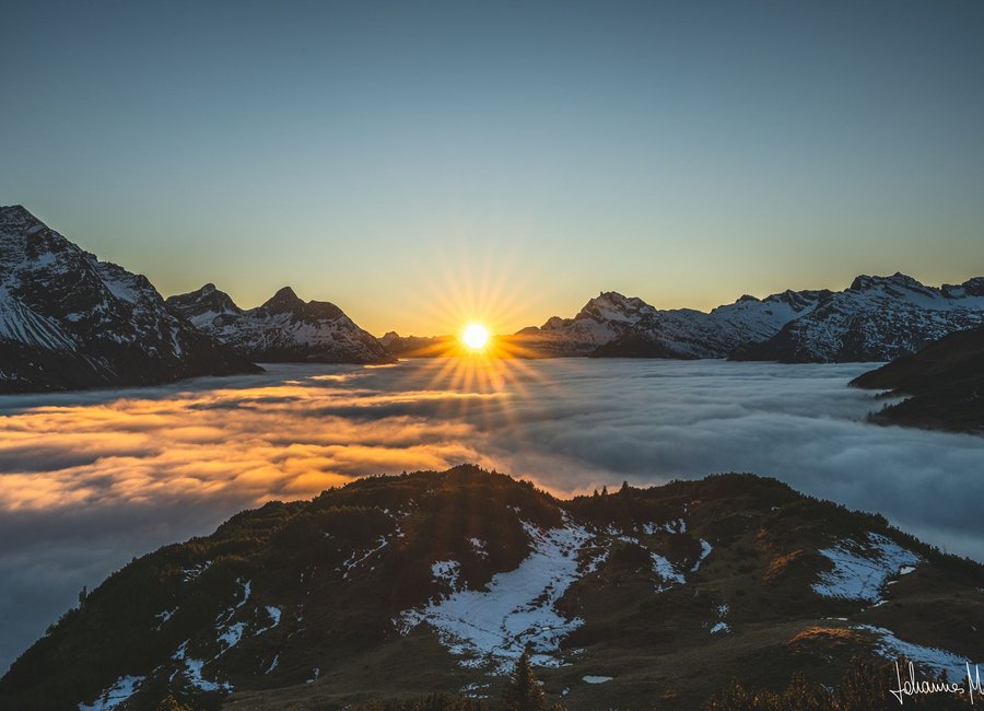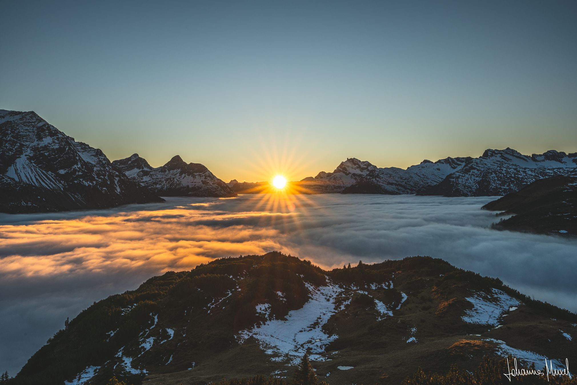 Wir genießen das schöne Herbstwetter - Johannes hat währenddessen den Sonnenuntergang vom Kriegerhorn aus festgehalten.