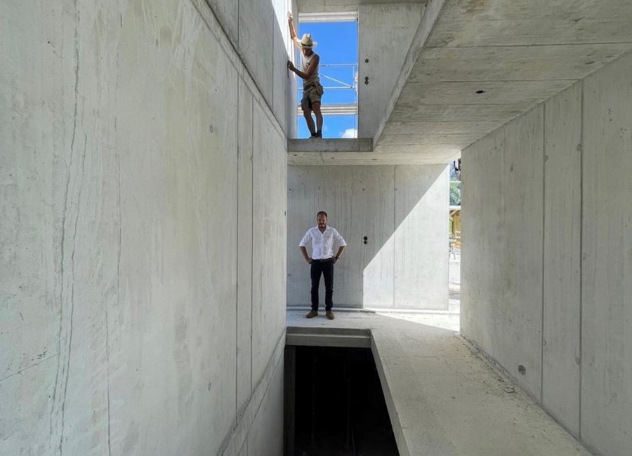 Auf der Baustelle wird fleißig gearbeitet und unser Teamhaus nimmt erste Formen an - Martin gefällts!