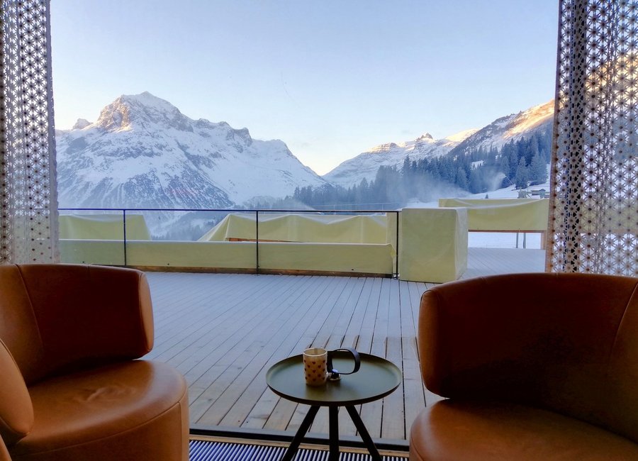 Das Omeshorn erstrahlt in der Morgensonne, die Schneekanonen summen erfreulich vor sich hin & in unserer Hotelhalle ist es wohlig warm.