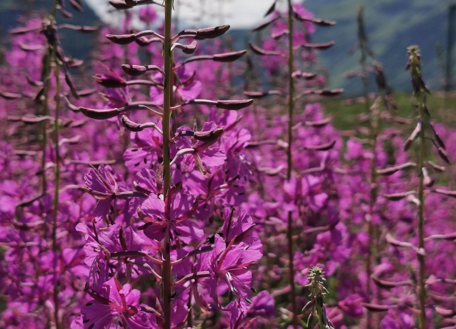 Neben all den schönen Blumen in Oma Muxels Garten beglückt uns das schmalblättrige Weidenröschen voll und ganz mit seiner Farben- und Blütenpracht.