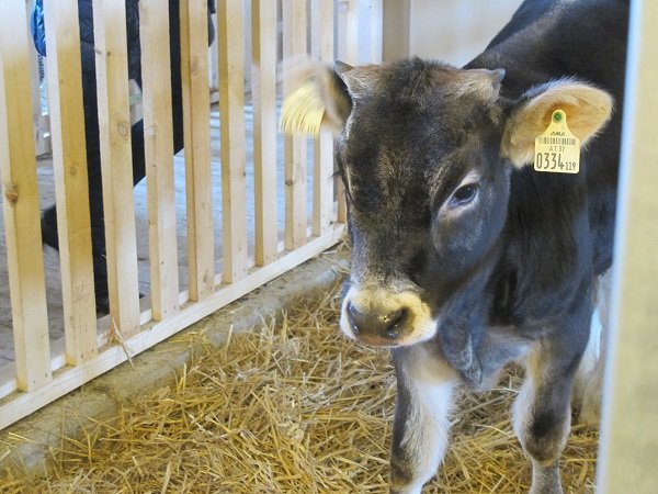 Lina, zur Rasse des Tiroler Grauviehs gehörend, ist die erste Kuh, die