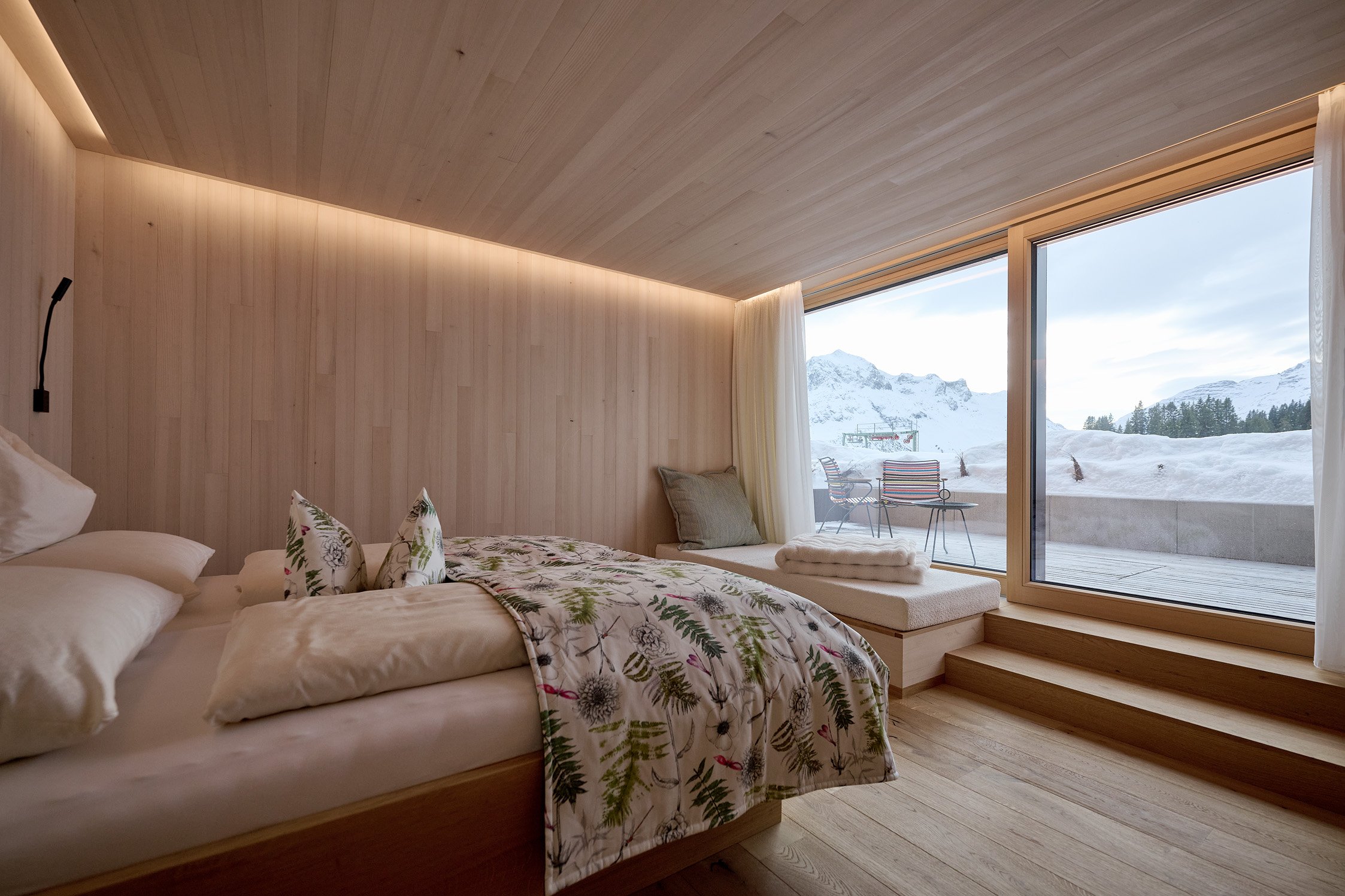Aufwachen mit Blick aufs Omeshorn! Diesen besonderen Lech-Moment ermöglichen die Komfortzimmer „Schafberg.“ Die einzigartige Aussicht lässt sich zudem auf dem eigenen Balkon in Südlage genießen, der zum Sonnenbaden einlädt.