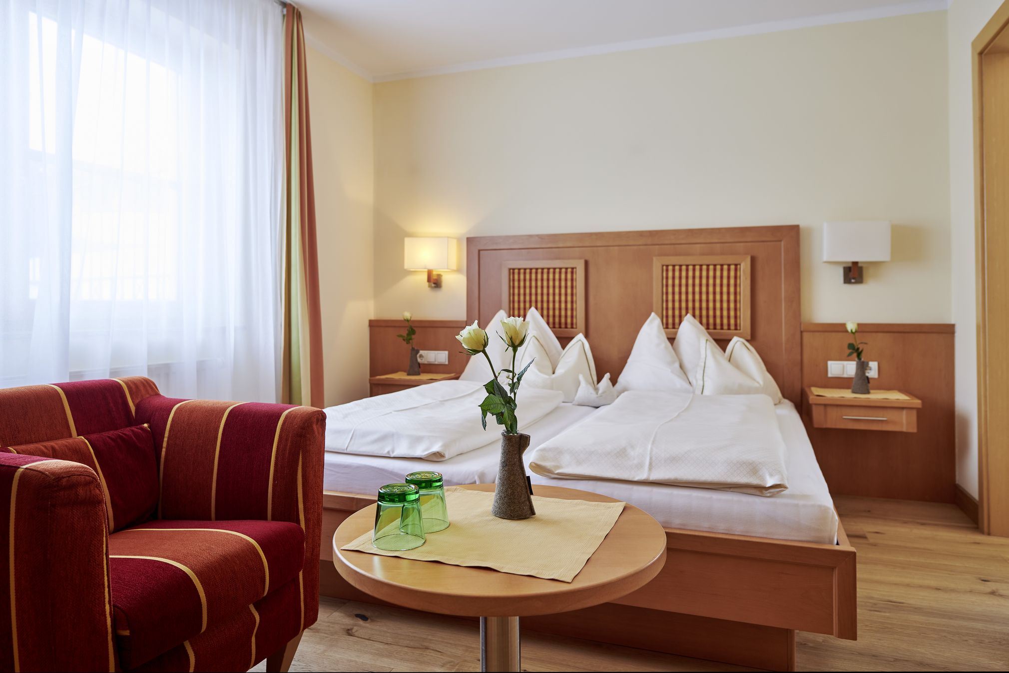 Mit modernem, harmonischem Design und einer Innenausstattung aus dem heimischen Holz der Weißtanne wurde im Komfortzimmer „Kriegerhorn“ ein erholsames Zuhause für die Ferientage geschaffen. Außerdem verfügt es über einen eigenen Balkon gen Westen.