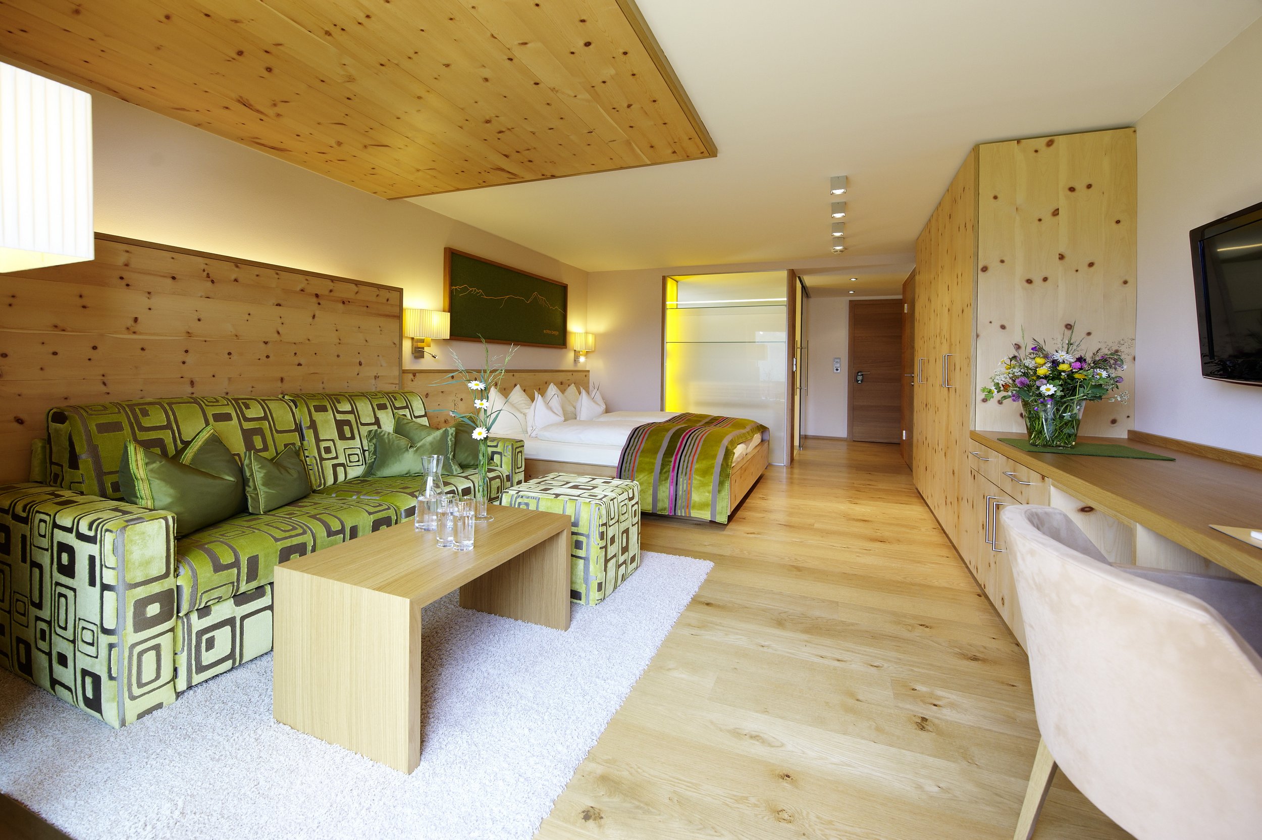 Mit ihren stilvoll eingerichteten 42m², dem getrennten Wohn- und Schlafzimmer und dem Balkon in Südlage mit einzigartiger Aussicht ist die Zirben-Suite das perfekte Zimmer für einen erholsamen Urlaub! Außerdem wird der Zirbe eine entspannende Wirkung zugeschrieben, die für besonders erholsamen…