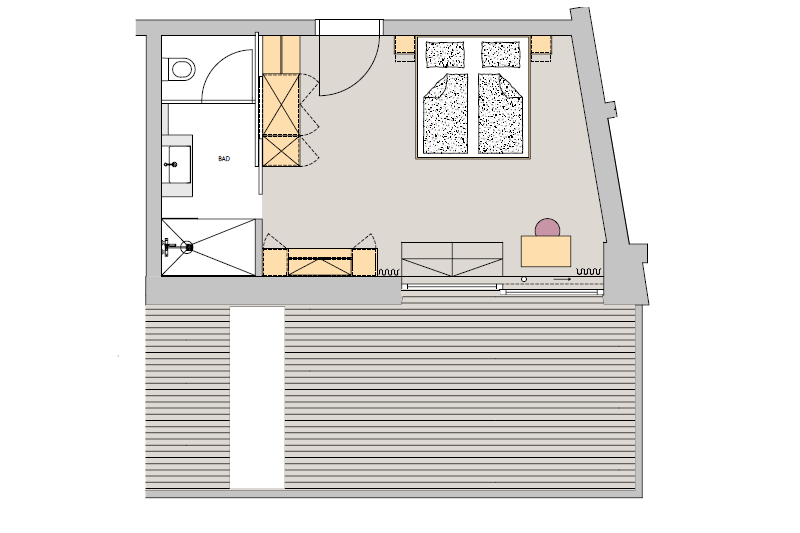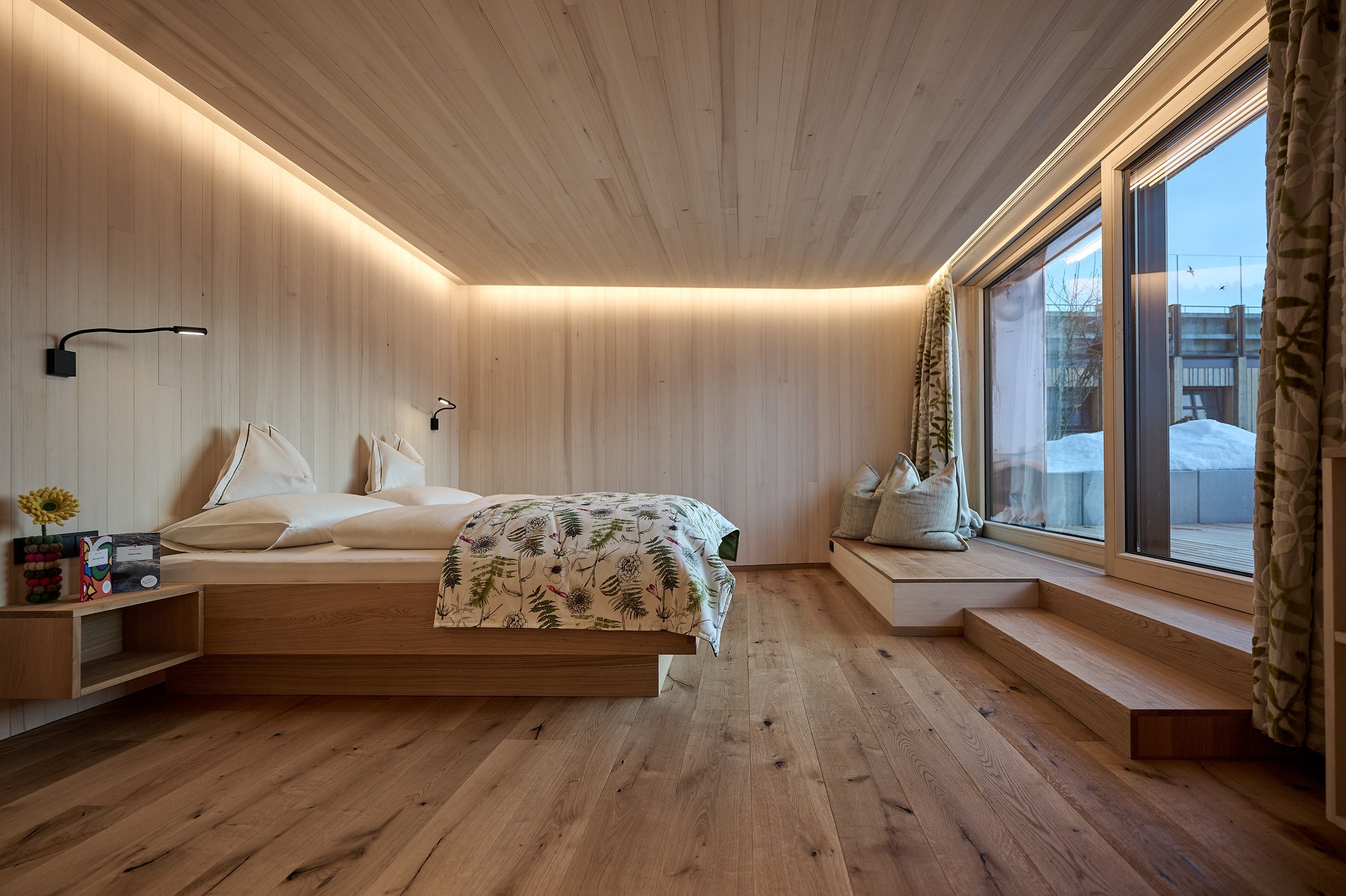 Mit modernem, harmonischem Design und einer Innenausstattung aus Holz wurde im Gartenzimmer „Petersboden“ ein erholsames Zuhause für Ihre Ferientage geschaffen. Außerdem verfügt das Zimmer über eine Terrasse in Südlage.